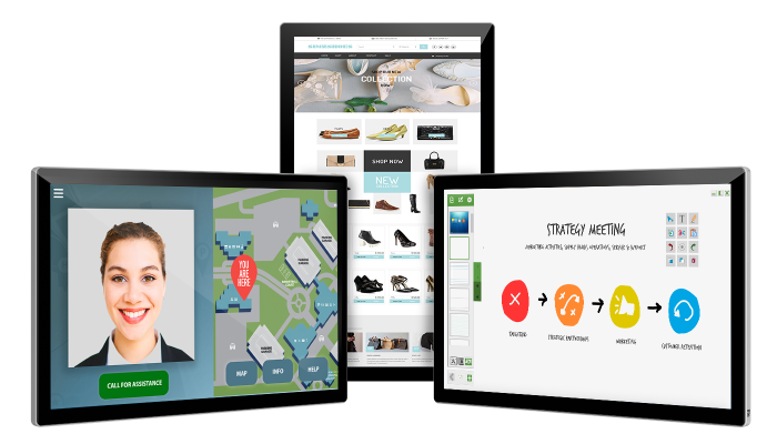 Our commercial-grade interactive displays can be mounted in landscape, portrait and tabletop orientations, providing optimal flexibility for mounting to a wall, in a kiosk or tabletop.
